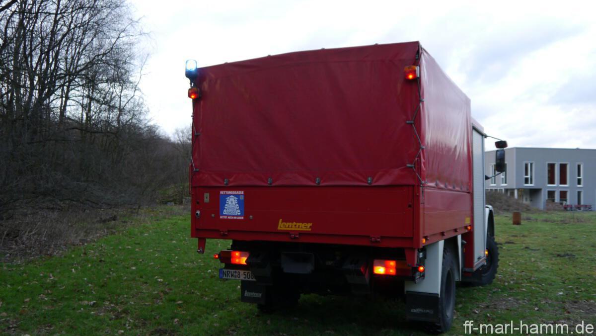 Fahrgestell: Iveco Eurocargo Bj. 1995, mit Geländeuntersetzung Führerschein: Klasse C Aufbau: Lentner GmbH Beladung: 1800 meter B-Schlauch in Buchten gelegter + 200m B-Rollschlauch,